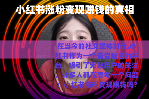 在当今的社交媒体时代,小红书作为一个备受瞩目的平台,吸引了无数用户的关注,许多人都在思考一个问题:小红书涨粉变现赚钱吗?