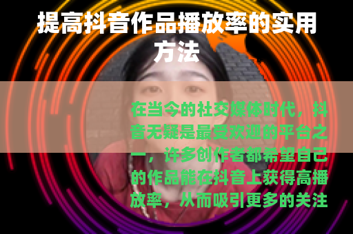 通过以上这些方法的综合运用,你就有更大的机会提高抖音作品的播放率,在抖音这个充满活力的平台上获得更多的关注和认可,让你的创作之路更加顺利。