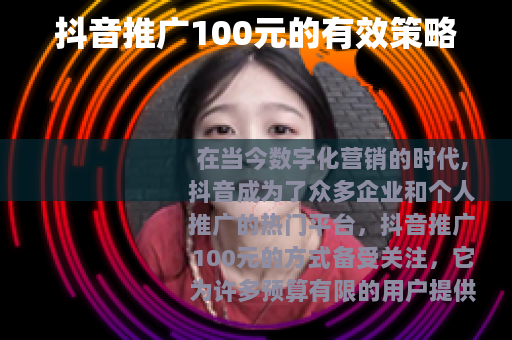 在当今数字化营销的时代,抖音成为了众多企业和个人推广的热门平台,抖音推广100元的方式备受关注,它为许多预算有限的用户提供了一个低成本推广的机会。