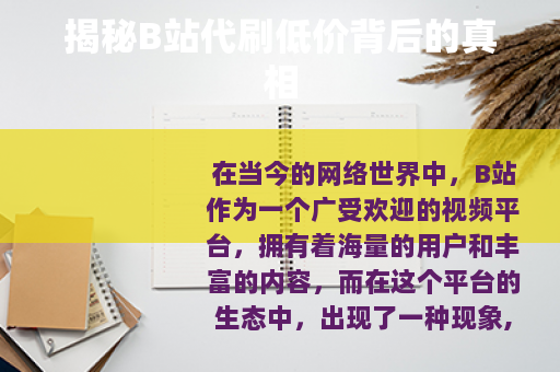 在当今的网络世界中,B站作为一个广受欢迎的视频平台,拥有着海量的用户和丰富的内容,而在这个平台的生态中,出现了一种现象,那就是b站代刷低价服务。