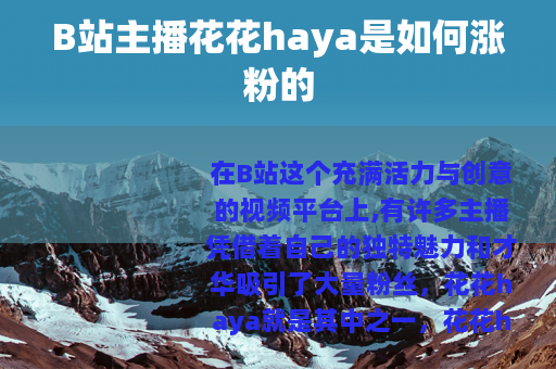 在B站这个充满活力与创意的视频平台上,有许多主播凭借着自己的独特魅力和才华吸引了大量粉丝,花花haya就是其中之一。