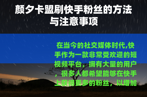 在当今的社交媒体时代,快手作为一款非常受欢迎的短视频平台,拥有大量的用户,很多人都希望能够在快手上获得更多的粉丝,以增加自己的影响力和知名度,颜夕卡盟就是一个声称可以帮助用户刷快手粉丝的平台。