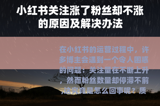 在小红书的运营过程中,许多博主会遇到一个令人困惑的问题:关注量在不断上升,然而粉丝数量却停滞不前,这究竟是怎么回事呢?