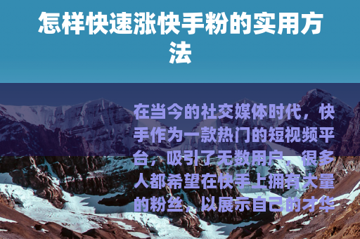 在当今的社交媒体时代,快手作为一款热门的短视频平台,吸引了无数用户,很多人都希望在快手上拥有大量的粉丝,以展示自己的才华、分享生活点滴或推广自己的产品与服务,怎样涨快手粉呢?以下是一些实用的方法。