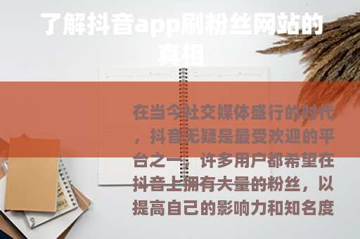 在当今社交媒体盛行的时代,抖音无疑是最受欢迎的平台之一,许多用户都希望在抖音上拥有大量的粉丝,以提高自己的影响力和知名度,这也使得一些所谓的抖音app刷粉丝网站应运而生。