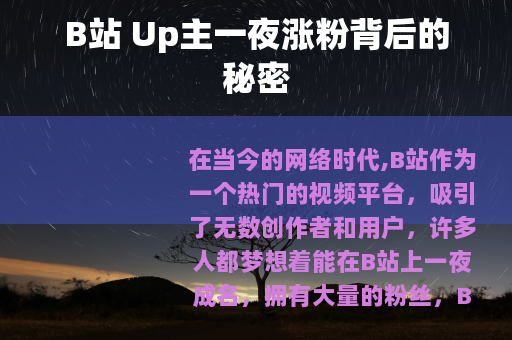 在当今的网络时代,B站作为一个热门的视频平台,吸引了无数创作者和用户,许多人都梦想着能在B站上一夜成名,拥有大量的粉丝,B站 Up主一夜究竟能涨多少粉丝呢?