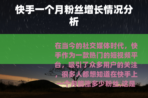 在当今的社交媒体时代,快手作为一款热门的短视频平台,吸引了众多用户的关注,很多人都想知道在快手上一个月能涨多少粉丝,这是一个备受关注的话题。