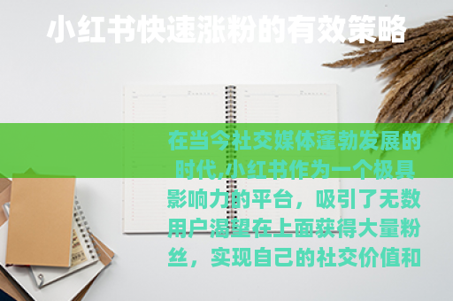 在当今社交媒体蓬勃发展的时代,小红书作为一个极具影响力的平台,吸引了无数用户渴望在上面获得大量粉丝,实现自己的社交价值和商业价值,如何在小红书上实现直接涨粉数的增长呢?下面就为大家分享一些实用的方法。