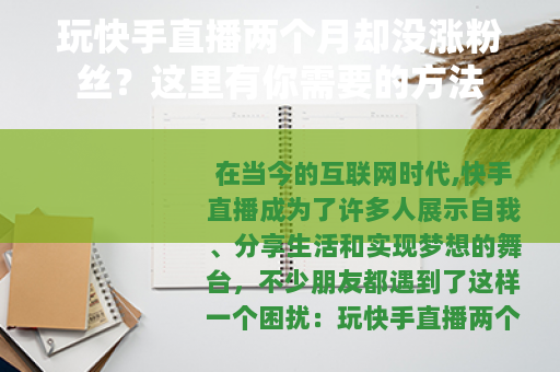 在当今的互联网时代,快手直播成为了许多人展示自我、分享生活和实现梦想的舞台,不少朋友都遇到了这样一个困扰:玩快手直播两个月了,粉丝数量却迟迟不见增长,这到底是怎么回事呢?