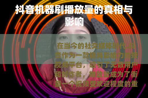 在当今的社交媒体时代,抖音作为一款极具影响力的短视频平台,吸引了无数用户和创作者,播放量成为了衡量一个视频受欢迎程度的重要指标之一,有一种现象逐渐引起了人们的关注,那就是抖音机器刷播放量。