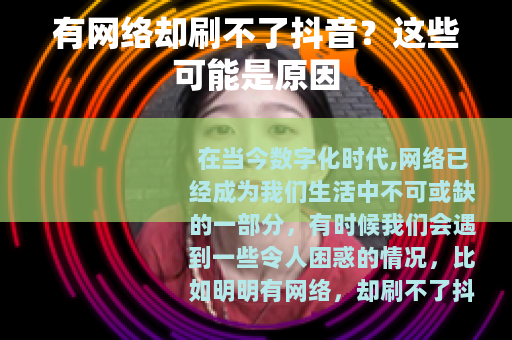 在当今数字化时代,网络已经成为我们生活中不可或缺的一部分,有时候我们会遇到一些令人困惑的情况,比如明明有网络,却刷不了抖音,这究竟是怎么回事呢?