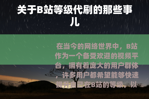 在当今的网络世界中,B站作为一个备受欢迎的视频平台,拥有着庞大的用户群体,许多用户都希望能够快速提升自己在B站的等级,以获得更多的权限和更好的体验,B站等级代刷这个现象便应运而生。