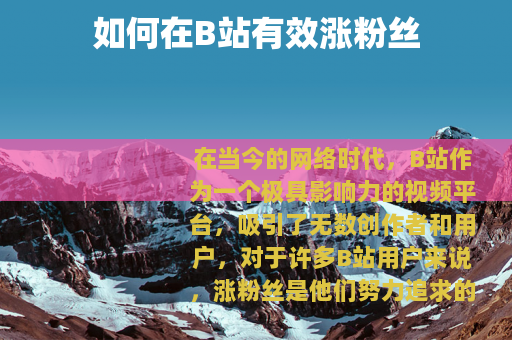 在当今的网络时代,B站作为一个极具影响力的视频平台,吸引了无数创作者和用户,对于许多B站用户来说,涨粉丝是他们努力追求的目标之一,因为粉丝数量不仅代表着受欢迎程度,还能为创作者带来更多的机会和收益。