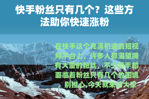在快手这个充满机遇的短视频平台上,许多人都渴望拥有大量的粉丝,不少新手却面临着粉丝只有几个的困境,别担心,今天就来给大家分享一些能让你在快手上快速涨粉的有效方法。