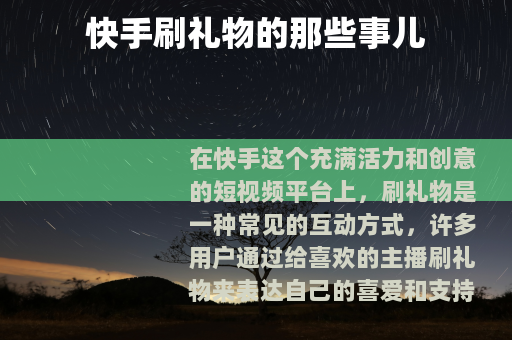在快手这个充满活力和创意的短视频平台上,刷礼物是一种常见的互动方式,许多用户通过给喜欢的主播刷礼物来表达自己的喜爱和支持,这也成为了快手生态中独特的一部分。