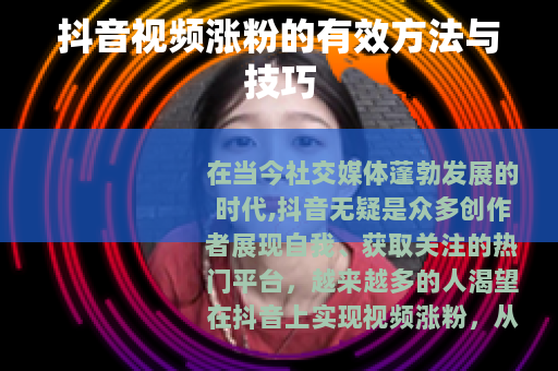 抖音视频涨粉需要综合考虑多个方面,不断努力和创新,持续提供优质的内容和良好的用户体验,只要坚持不懈地去实践和探索,相信每个创作者都能在抖音上实现自己的涨粉目标,收获属于自己的粉丝群体,在这个充满机遇的平台上绽放光彩。