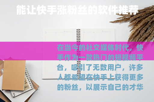在当今的社交媒体时代,快手作为一款热门的短视频平台,吸引了无数用户,许多人都希望在快手上获得更多的粉丝,以展示自己的才华或推广自己的产品与服务,究竟什么软件才能让快手涨粉丝呢?