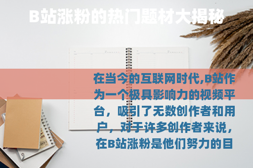 在当今的互联网时代,B站作为一个极具影响力的视频平台,吸引了无数创作者和用户,对于许多创作者来说,在B站涨粉是他们努力的目标之一,而选择合适的题材则是实现这一目标的关键。