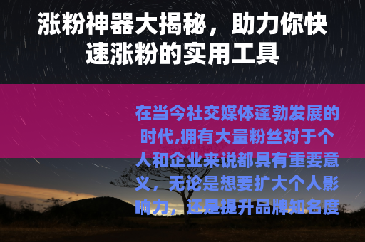 在当今社交媒体蓬勃发展的时代,拥有大量粉丝对于个人和企业来说都具有重要意义,无论是想要扩大个人影响力,还是提升品牌知名度,粉丝数量都是一个关键指标,而在这个过程中,有一类被称为“涨粉神器”的工具逐渐受到了大家的关注。