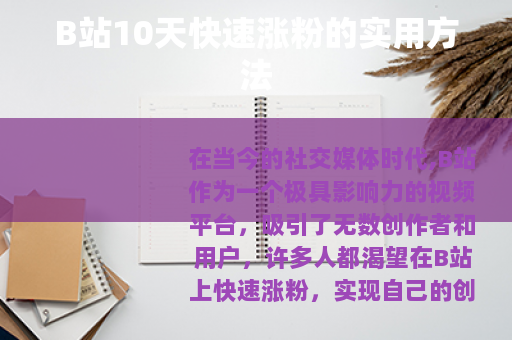 在当今的社交媒体时代,B站作为一个极具影响力的视频平台,吸引了无数创作者和用户,许多人都渴望在B站上快速涨粉,实现自己的创作价值和影响力,以下是一些能够帮助你在B站 10天涨粉的有效策略。 质量是关键,要确保你的视频内容有独特性和吸引力,无论是有趣的搞笑视频、深度的知识讲解,还是精彩的才艺展示,都要让观众在观看后能有所收获或感到愉悦,花时间精心策划和制作每一个视频,从选题、脚本撰写到拍摄和后期剪辑,都要力求做到尽善尽美,如果你擅长绘画,可以制作一系列绘画教程视频,详细地展示绘画技巧和创作过程,这样能吸引到对绘画感兴趣的用户群体。