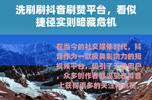 在当今的社交媒体时代,抖音作为一款极具影响力的短视频平台,吸引了无数用户,众多创作者都渴望在抖音上获得更多的关注和点赞,以提升自己的影响力和知名度,在这个追求流量的过程中,一些所谓的“捷径”应运而生,其中就包括洗刷刷抖音刷赞平台。