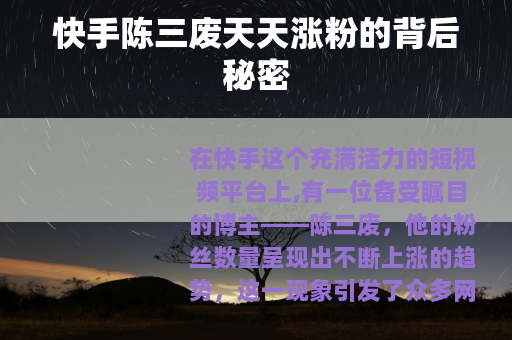 在快手这个充满活力的短视频平台上,有一位备受瞩目的博主——陈三废,他的粉丝数量呈现出不断上涨的趋势,这一现象引发了众多网友的好奇与关注。