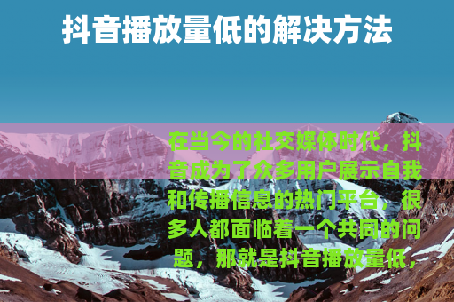 在当今的社交媒体时代,抖音成为了众多用户展示自我和传播信息的热门平台,很多人都面临着一个共同的问题,那就是抖音播放量低,抖音播放量低还能提高吗?答案是肯定的。