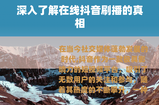 在当今社交媒体蓬勃发展的时代,抖音作为一款极具影响力的短视频平台,吸引了无数用户的关注和参与,随着其热度的不断攀升,一种名为“在线抖音刷播”的现象也逐渐进入了大众的视野。