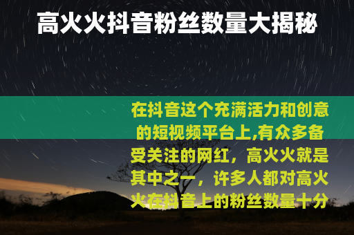 虽然具体的粉丝数量可能会随着时间的推移而有所变化,但不可否认的是,高火火在抖音上已经拥有了相当可观的粉丝数量,这也让他成为了抖音平台上的一位重要网红,他的成功不仅仅是个人的荣耀,也为其他想要在抖音上发展的创作者提供了借鉴和启示。