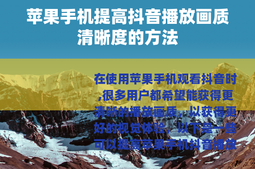 在使用苹果手机观看抖音时,很多用户都希望能获得更清晰的播放画质,以获得更好的视觉体验,以下是一些可以提高苹果手机抖音播放画质清晰度的方法。