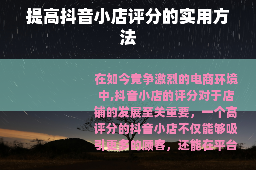 在如今竞争激烈的电商环境中,抖音小店的评分对于店铺的发展至关重要,一个高评分的抖音小店不仅能够吸引更多的顾客,还能在平台上获得更多的流量和曝光机会,怎样提高抖音小店评分呢?以下是一些实用的方法。