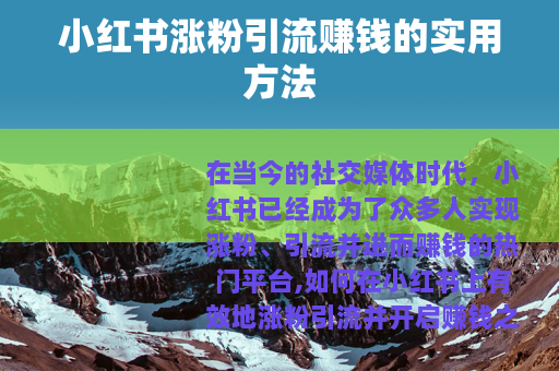 在当今的社交媒体时代,小红书已经成为了众多人实现涨粉、引流并进而赚钱的热门平台,如何在小红书上有效地涨粉引流并开启赚钱之路呢?