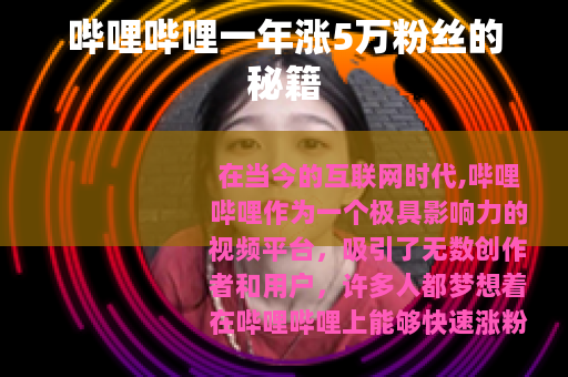 在当今的互联网时代,哔哩哔哩作为一个极具影响力的视频平台,吸引了无数创作者和用户,许多人都梦想着在哔哩哔哩上能够快速涨粉,实现自己的创作价值和影响力,我们就来一起探讨一下如何在哔哩哔哩一年涨5万粉丝的方法。 质量是关键,要想吸引粉丝,就必须提供有价值、有趣、有特色的视频内容,无论是搞笑、知识科普、美食制作还是游戏攻略等各种类型,都要确保自己的视频在同类型中具有独特的亮点,在制作知识科普视频时,可以通过生动形象的动画演示、通俗易懂的讲解方式,让复杂的知识变得简单易懂,从而吸引更多观众的关注和喜爱。