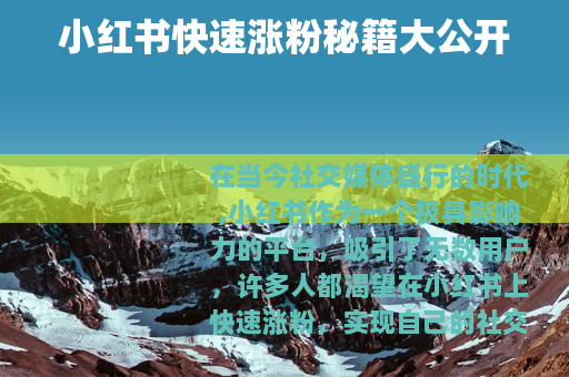 在当今社交媒体盛行的时代,小红书作为一个极具影响力的平台,吸引了无数用户,许多人都渴望在小红书上快速涨粉,实现自己的社交影响力和商业价值,究竟怎么让小红笔记快速涨粉丝呢?下面就为大家详细介绍一些实用的方法。