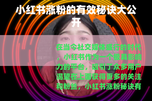 在当今社交媒体盛行的时代,小红书作为一个极具影响力的平台,吸引了众多用户渴望在上面获得更多的关注和粉丝,小红书涨粉秘诀有哪些呢?下面就为大家详细介绍。 的质量是关键,要确保你发布的笔记内容有价值、有趣且独特,可以分享自己的专业知识、生活经验、购物心得、旅行攻略等等,如果你擅长美妆,那么可以发布详细的化妆教程、产品评测等内容,让用户能够从你的笔记中真正学到有用的东西,这样他们就更有可能关注你,期待你后续的分享。