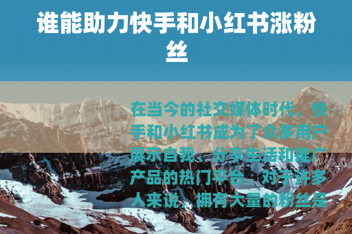在当今的社交媒体时代,快手和小红书成为了众多用户展示自我、分享生活和推广产品的热门平台,对于许多人来说,拥有大量的粉丝是在这些平台上取得成功的关键之一,究竟谁能做快手和小红书涨粉丝呢?