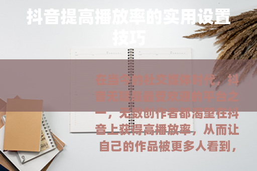 在当今的社交媒体时代,抖音无疑是最受欢迎的平台之一,无数创作者都渴望在抖音上获得高播放率,从而让自己的作品被更多人看到,抖音如何设置才能提高播放率呢?以下是一些实用的技巧。 的质量至关重要,确保你的视频画面清晰、稳定,光线充足,声音清晰可听,一个高质量的视频会给用户留下良好的第一印象,吸引他们继续观看下去,在拍摄前,要精心策划内容,选取有趣、有价值或能引起观众共鸣的主题,可以通过讲故事、分享知识、展示才艺等方式来制作视频,让观众在观看过程中有收获或感受到乐趣。