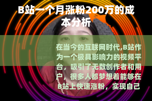 在当今的互联网时代,B站作为一个极具影响力的视频平台,吸引了无数创作者和用户,很多人都梦想着能够在B站上快速涨粉,实现自己的创作价值和商业目标,一个月涨粉200万更是许多人梦寐以求的成绩,在B站实现一个月涨粉200万需要多少钱呢?
