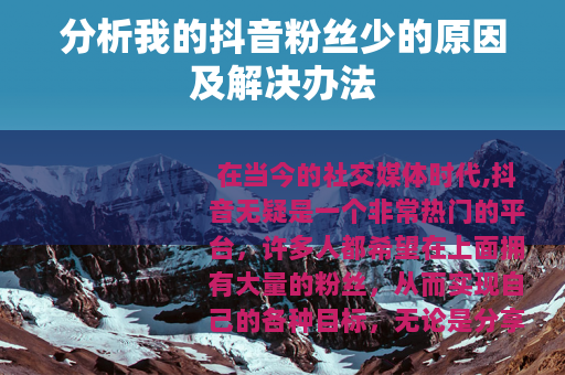 在当今的社交媒体时代,抖音无疑是一个非常热门的平台,许多人都希望在上面拥有大量的粉丝,从而实现自己的各种目标,无论是分享生活、展示才艺还是进行商业推广等,我却面临着一个困扰,那就是我的抖音粉丝那么少。