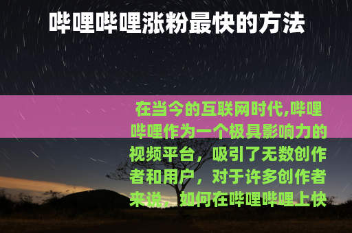 在当今的互联网时代,哔哩哔哩作为一个极具影响力的视频平台,吸引了无数创作者和用户,对于许多创作者来说,如何在哔哩哔哩上快速涨粉是他们最为关心的问题之一,以下是一些在哔哩哔哩涨粉较快的有效方法。 质量是关键,要制作出高质量、有创意且独特的视频内容,无论是有趣的动画、精彩的游戏解说,还是实用的知识分享,都要确保能为观众带来真正的价值和乐趣,如果你擅长烹饪,可以制作详细的美食制作教程,从食材准备到烹饪步骤,再到最后的成品展示,每一个环节都精心呈现,让观众在观看后能够学到新的烹饪技巧,这样的内容就很容易吸引到粉丝。