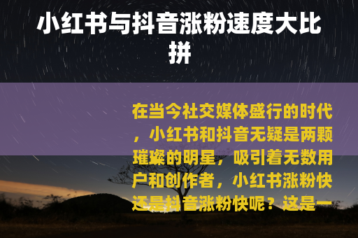 在当今社交媒体盛行的时代,小红书和抖音无疑是两颗璀璨的明星,吸引着无数用户和创作者,小红书涨粉快还是抖音涨粉快呢?这是一个许多人都关心的问题。