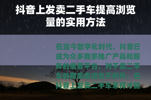 在当今数字化时代,抖音已成为众多商家推广产品和服务的重要平台,对于卖二手车的商家来说也不例外,在抖音上发卖二手车怎样才能提高浏览量呢?以下是一些实用的方法。