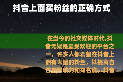 在当今的社交媒体时代,抖音无疑是最受欢迎的平台之一,许多人都希望在抖音上拥有大量的粉丝,以提高自己的影响力和知名度,抖音上面怎么买粉丝呢?这是一个很多人都关心的问题。