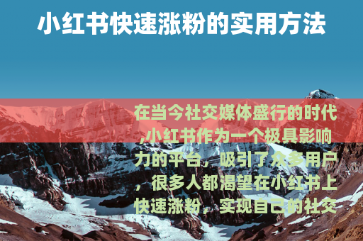 在当今社交媒体盛行的时代,小红书作为一个极具影响力的平台,吸引了众多用户,很多人都渴望在小红书上快速涨粉,实现自己的社交和商业价值,以下是一些能帮助你在小红书上快速涨粉的有效方法。