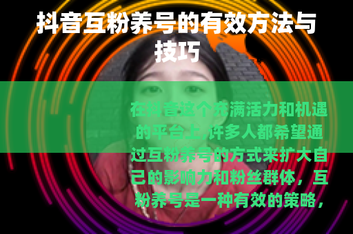 在抖音这个充满活力和机遇的平台上,许多人都希望通过互粉养号的方式来扩大自己的影响力和粉丝群体,互粉养号是一种有效的策略,但需要掌握正确的方法和技巧。