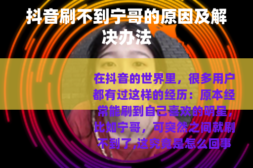 在抖音的世界里,很多用户都有过这样的经历:原本经常能刷到自己喜欢的明星,比如宁哥,可突然之间就刷不到了,这究竟是怎么回事呢?