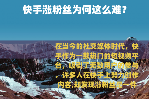 在当今的社交媒体时代,快手作为一款热门的短视频平台,吸引了无数用户的参与,许多人在快手上努力创作内容,却发现涨粉丝是一件相当困难的事情。