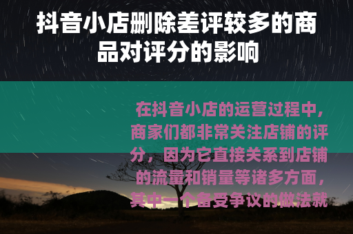 在抖音小店的运营过程中,商家们都非常关注店铺的评分,因为它直接关系到店铺的流量和销量等诸多方面,其中一个备受争议的做法就是删除差评较多的商品,那么这种做法到底能不能提高评分呢?