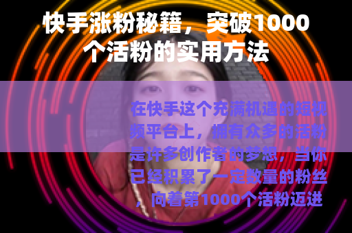 只要你坚持不懈地努力,运用这些有效的方法,相信在不久的将来,你就能在快手上成功涨粉,突破第1000个活粉的目标,在短视频创作的道路上取得更大的成功。