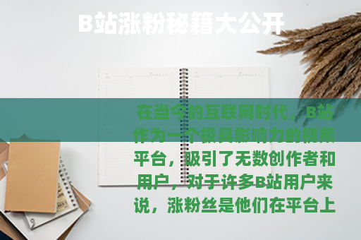 在B站涨粉丝需要多方面的努力和策略,只要你能够不断提升自己的创作能力,注重视频的各个环节,积极与观众互动,并善于利用平台的资源和功能,相信你在B站的粉丝数量一定会不断增长,在这个充满活力的平台上收获属于自己的成功。